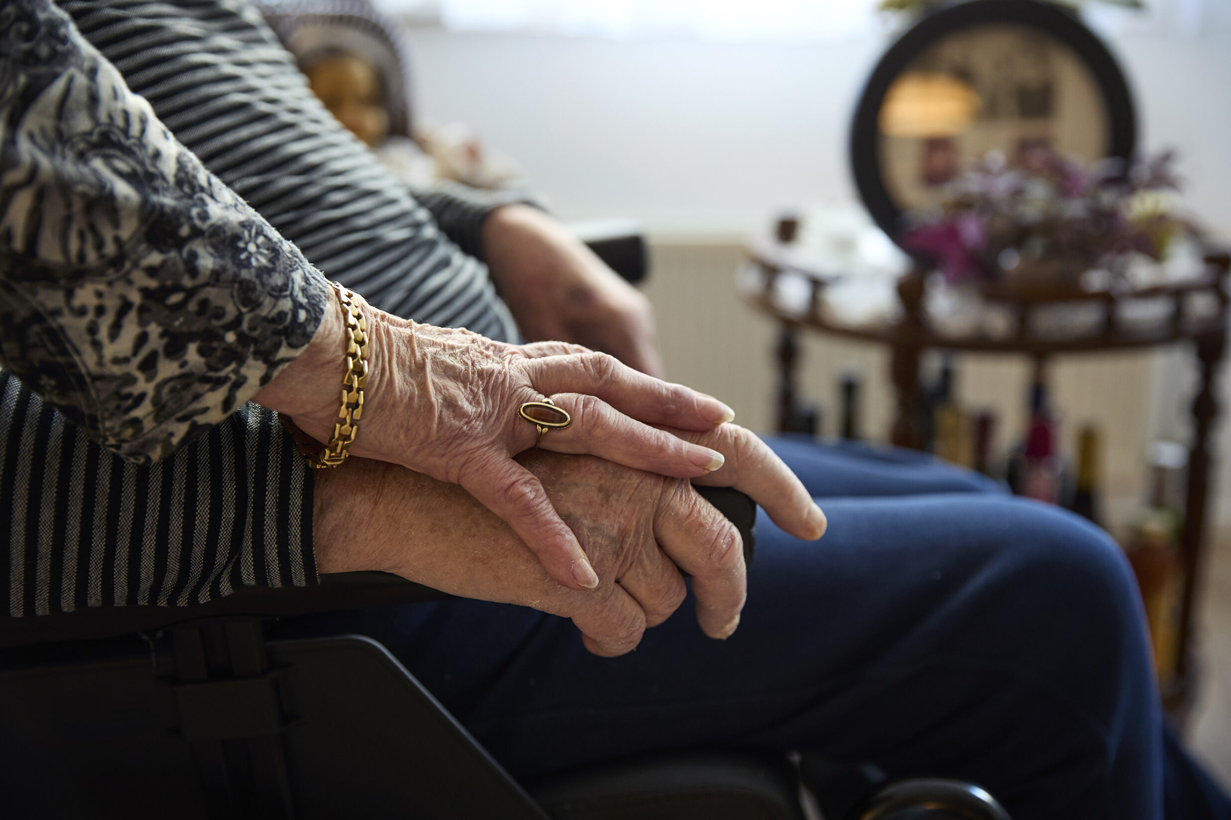 “Elke dag haal ik mijn man op om hier samen te zijn. We lezen onze krantjes, drinken koffie, de kinderen en kleinkinderen komen gezellig op bezoek … Net als altijd eigenlijk.”